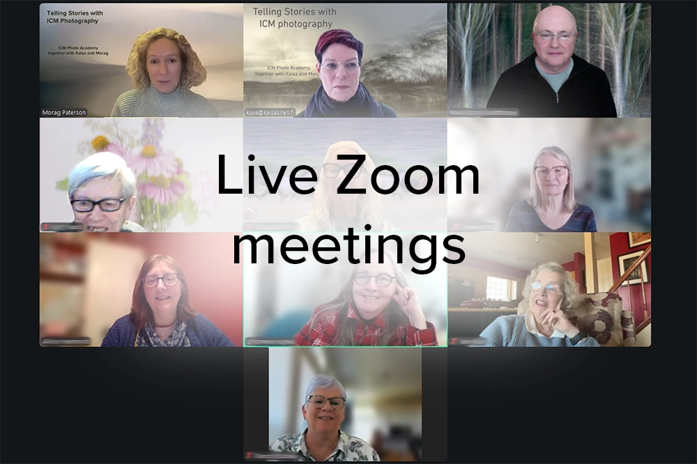 Live online sessions (3 every two months): Join us for interactive photography sessions where we: Explore creative ideas and themes Share and reflect on work Offer thoughtful, constructive feedback Learn together through conversation